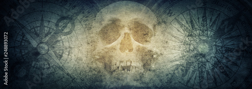 Fototapeta premium Piracka czaszka i kompasy na starym grunge papieru tle.