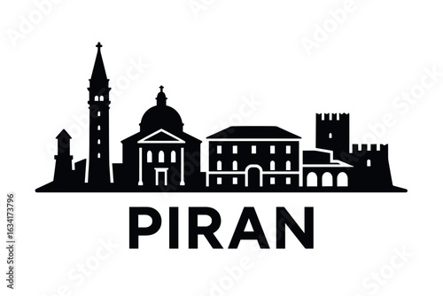 Obraz premium Piran skyline with square, cathedral, town walls and Adriatic sea