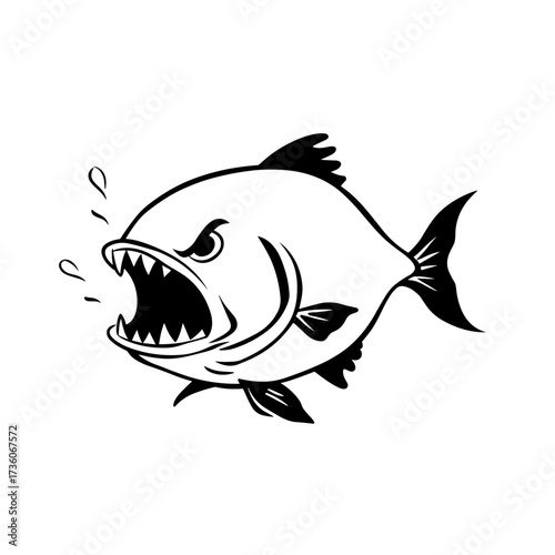 © Aquir, Obraz premium Piranha. Piranha simple black and white line art vector logo