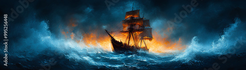 © Priyanut, Obraz premium Pirate ghost ship, trapped in an eternal storm, cursed crew, Watercolor style