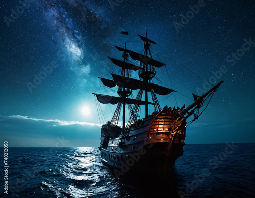 © Nadee, Fototapeta premium pirate ship in the sea