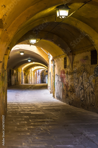 Fototapeta premium Pisa, Italy - August 14, 2019: Passages under the houses to get to other...