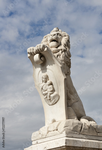 Fototapeta premium Pisa white statue of a lion near Arno river