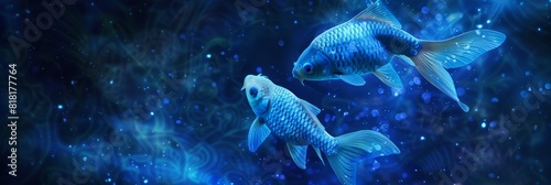 Fototapeta premium Pisces Zodiac Sign, Fish Horoscope Symbol, Two Magic Astrology Fishes, Pisces in Fantastic Night Sky