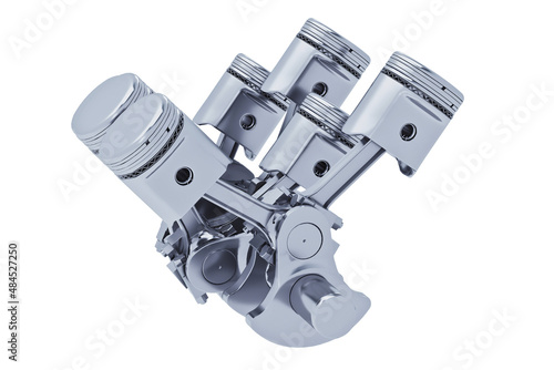 © podsolnykh, Naklejka premium Pistons V8 engine chrome plated isolated on white background