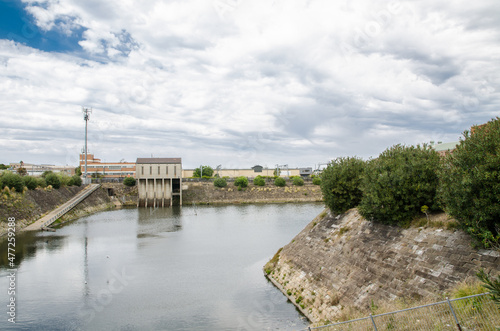 Naklejka premium Pit and Drainage Pumping Station with cloudy sky background.