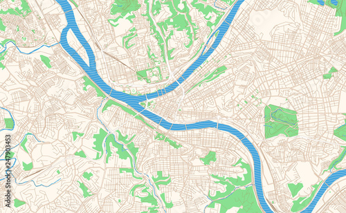 Obraz premium Pittsburgh Pennsylvania printable map excerpt