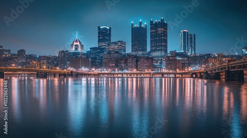 © abdul kahfi, Fototapeta premium Pittsburgh Skyline at Night