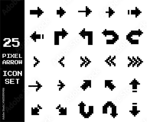 Obraz premium Pixel Arrow Icons – 8-Bit Direction Icon Set