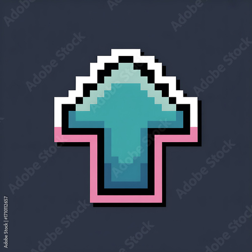 Obraz premium Pixel art arrow points upwards indicating progress, growth, or success in a modern digital aesthetic