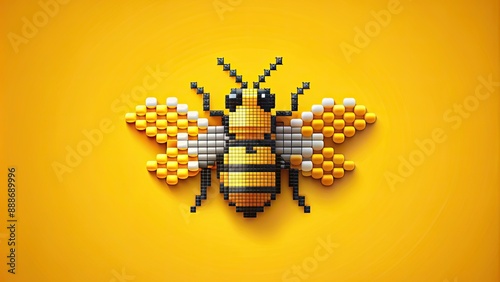 © Sujid, Obraz premium Pixel art bee on a bright yellow background, pixel art, bee, insect, cute, colorful,digital, small, wings, stripes, background