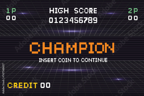 Obraz premium Pixel art 8-bit champion text on black background