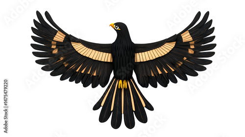 © PNGPHOTOCLUB, Naklejka premium Pixel Art Black and Gold Eagle with Spread Wings on Transparent