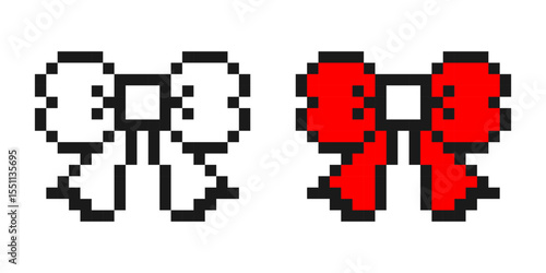 © Sarhanine, Obraz premium Pixel art bows in black-white and red color, in cute 8-bit retro style.