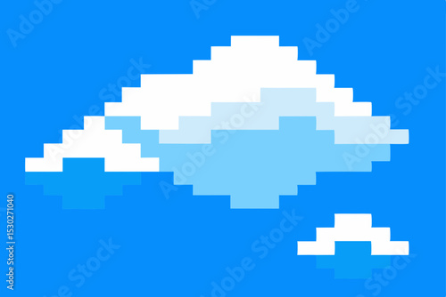 Obraz premium Pixel Art Clouds 8-bit Sky, Digital Cloud Illustration