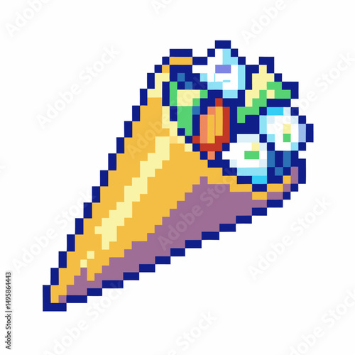 © inspiring , Fototapeta premium Pixel art cone with assorted colorful flowers on white background