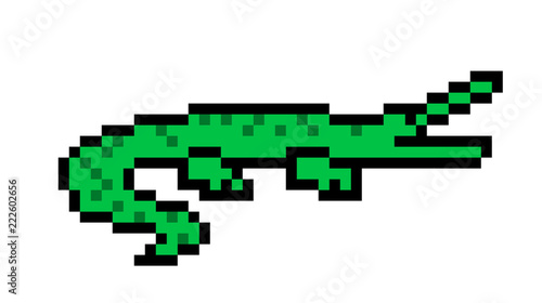 © Ksenia, Obraz premium Pixel art crocodile character isolated on white background. Wildlife/zoo/national park/safari animal icon. Cute 8 bit alligator logo. Retro vintage 80s; 90s slot machine/video game graphics.