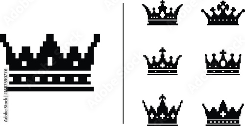 © MALA, Obraz premium pixel art crown designs various styles and sizes displayed