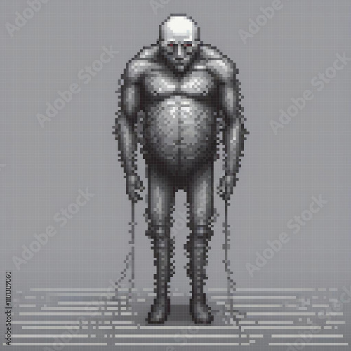 © gulbahar, Fototapeta premium Pixel art depicting a man in chains, showcasing a 3D model.