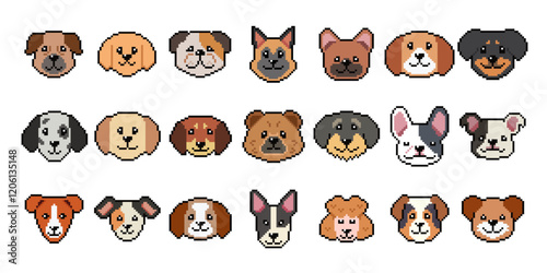 Obraz premium Pixel art different type of dog faces vector in retro style for design.