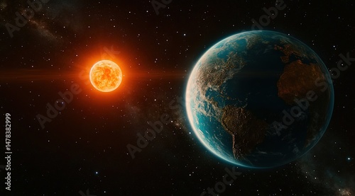 Fototapeta premium Pixel Art Earth And Sun In Space