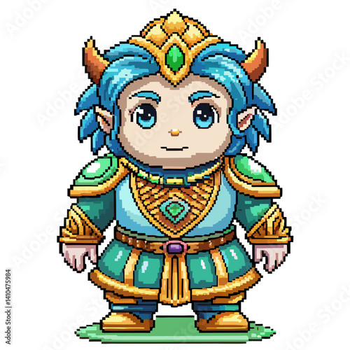 Fototapeta premium Pixel Art Fantasy Elf Warrior with Blue Hair in Ornate Armor
