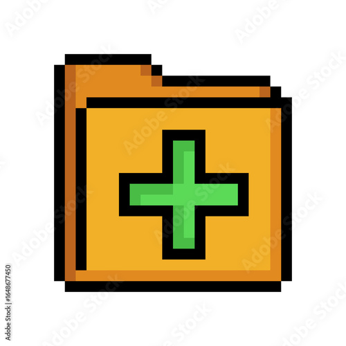 Obraz premium Pixel Art Folder Icon with Green Plus Symbol