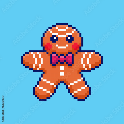 Fototapeta premium Pixel art Gingerbread Cookie game asset design