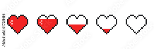 Obraz premium Pixel art heart icon set. Retro game life bar. Template design for web site,...
