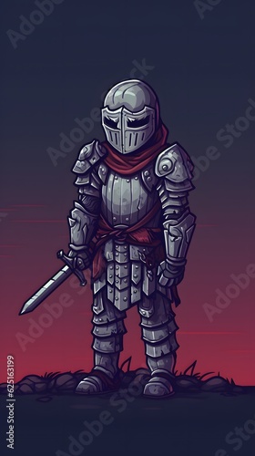Fototapeta premium Pixel art knight character for RPG game, character in retro style for 8 bit game