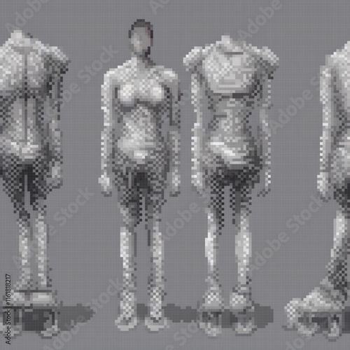 © AlphaStock, Fototapeta premium Pixel art mannequin poses showcasing diverse styles.