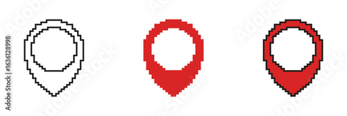 Obraz premium Pixel Art Map Pin Icon Set. Location Marker, Navigation, And Gps Symbol...