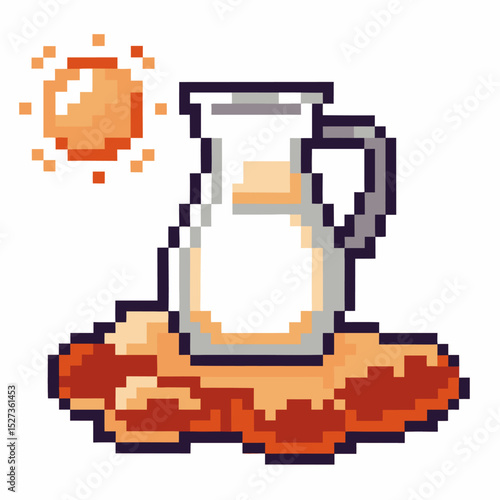 © inspiring , Obraz premium Pixel art milk jug under the sun bright, simple design with retro video game