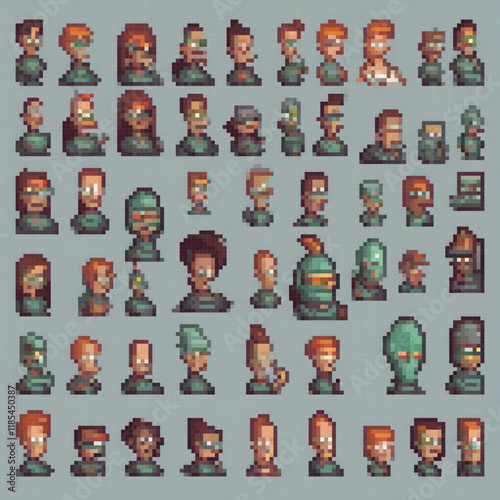 © BoldStock, Naklejka premium Pixel art of a bearded man with a hat, perfect for retro-style collections.