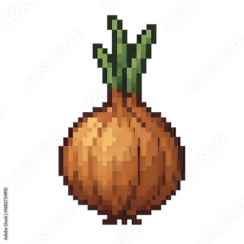 Fototapeta premium Pixel Art of a Sprouting Onion with Green Sprouts and Detail