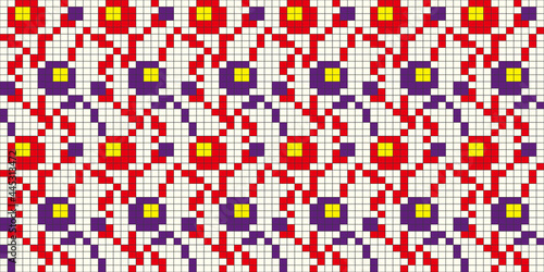 © tabosan, Fototapeta premium Pixel art. Organic motif, botanical motif background. Seamless pattern.Vector.ピクセルアートのスタイリッシュな有機的パターン