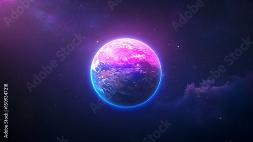 © Zatra, Obraz premium Pixel Art Planet In A Vibrant Galaxy