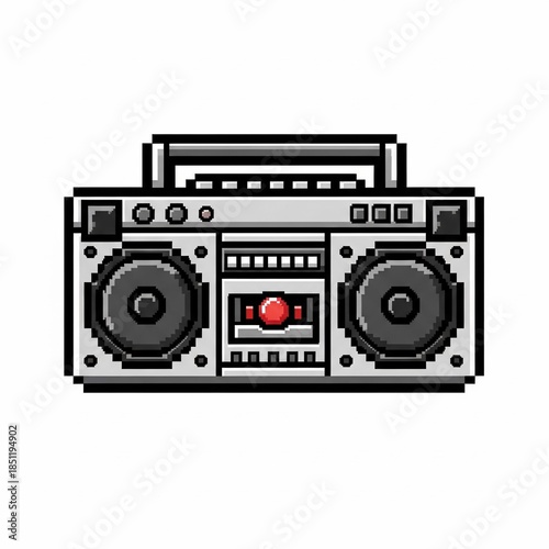 Fototapeta premium Pixel Art Retro Boombox Icon - Classic 8-bit Ghetto Blaster perfect for game asset, app icon, website graphic, t-shirt design, social media post, retro theme
