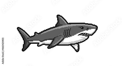 © vectorT, Naklejka premium Pixel Art Shark Illustration Retro Gaming Icon for Ocean Lovers and Marine Life Enthusiasts