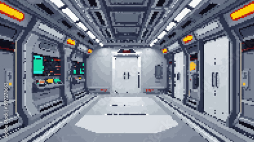 Obraz premium Pixel Art Space Station Corridor