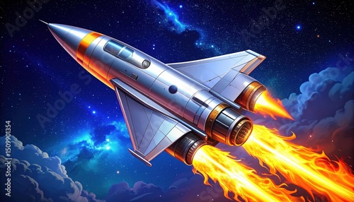 Obraz premium Pixel Art Spaceship Rocket Launch in Night Space