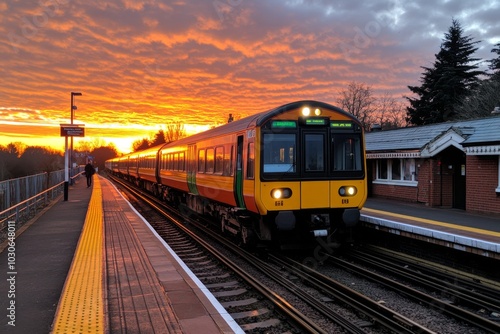 © Thanyarat, Fototapeta premium Pixel art train arriving at Woodstock Station on a bright morning