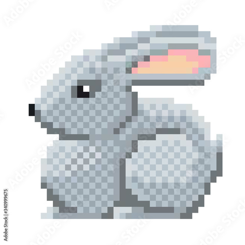 Obraz premium pixel art white rabbit icon, vector
