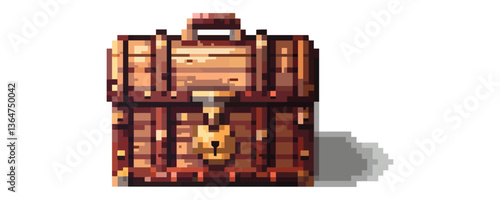 Obraz premium Pixel art wooden treasure chest with lock and handle.