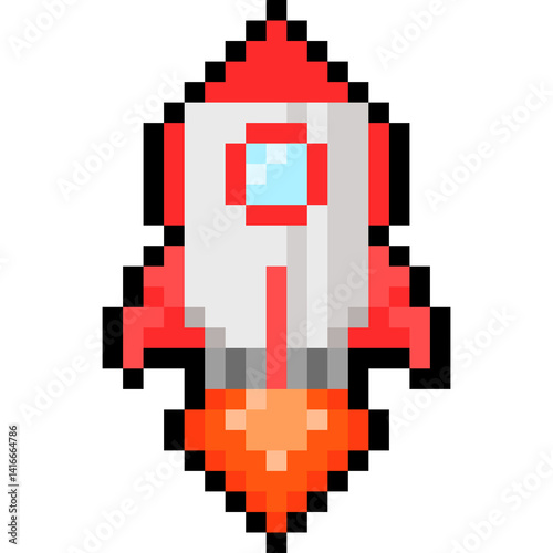 © Patinya_P_Ang, Obraz premium Pixel cartoon launching rocket icon 2.