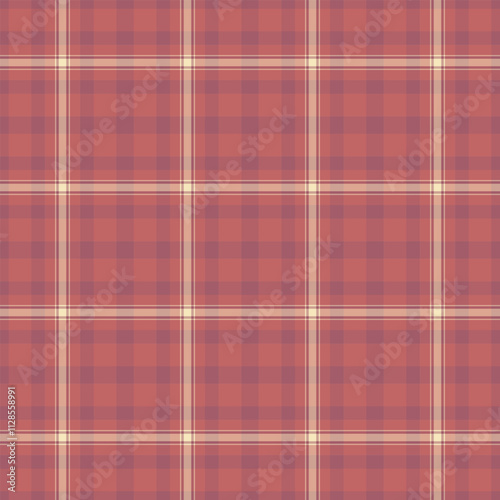 © SolaruS, Fototapeta premium Pixel check tartan background, manufacture vector textile texture. Designer seamless pattern plaid fabric in red and orange colors.