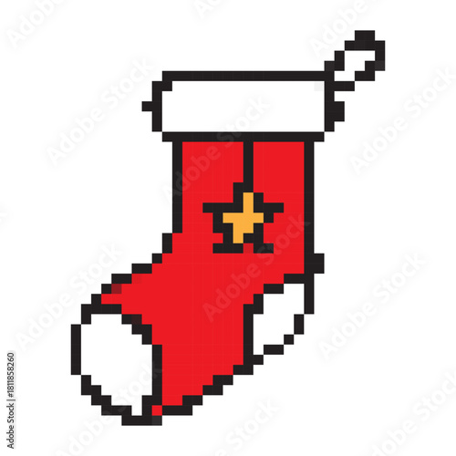 © Tetiana, Obraz premium Pixel Christmas sock icon vector illustration