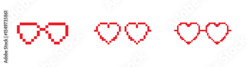 Obraz premium Pixel glasses hearts in retro mosaic style, with digital expression and...