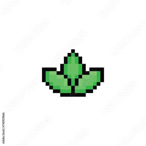 © veronchick84, Obraz premium pixel Leaf icon. Vector pixel art eco 8 bit logo for game