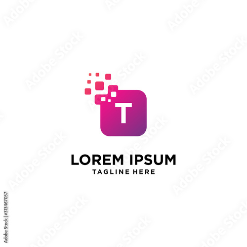 Obraz premium Pixel letter T logo. initial T with square pixel.